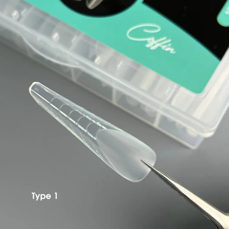 Форми пружні, добре тримають форму і знімаються легко після полімеризації з будь-яким матеріалом, вони не гнуться при підтисканні архітектури пінцетом або спеціальними тонкогубцями. Підходить для використання з матеріалами різного типу: полі-гель, акрил-гель, білдер-гелі та гелі-желе. Удосконалена форма створить архітектуру нігтів без зайвих зусиль навіть для початківців у моделюванні.