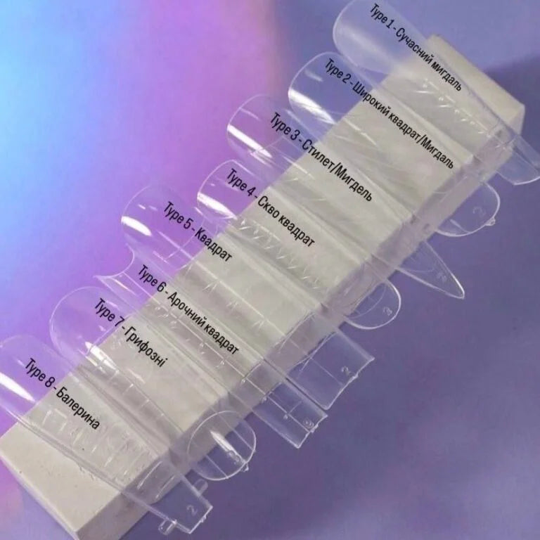 Type 5 — квадрат, 120 штук. У наборі 120 штук — 12 розмірів, що дозволяє легко підібрати необхідну форму для будь-якої нігтьової пластини.