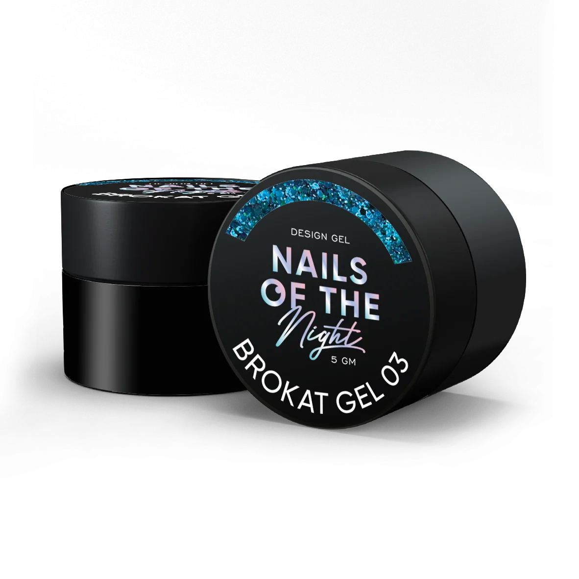 NAILSOFTHENIGHT Brokat gel — дизайн гель неперевершеної якості, що виділяється високою насиченістю різнобарвного брокату та глітеру.